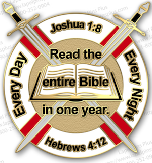 Already finished reading your Bible for a year? Send an email to Paul Verheyden at pjverheyden@sbcglobal.net or call/text 972-971-7407 for your personalized certificate and lapel pin